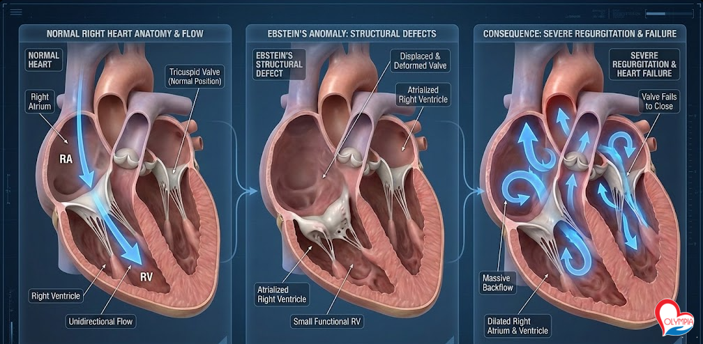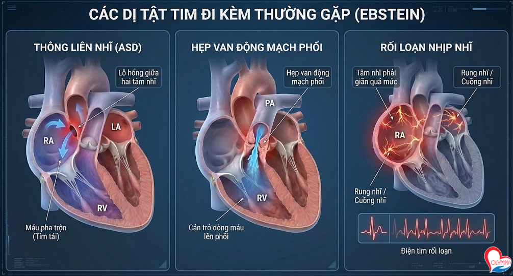 Lưu ý quan trọng: Khoảng 20% bệnh nhân Ebstein đi kèm với hội chứng Wolff-Parkinson-White (WPW), một tình trạng đường dẫn truyền điện học phụ gây ra những cơn nhịp nhanh kịch phát đe dọa tính mạng.