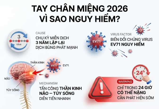 Tại sao bệnh tay chân miệng năm 2026 lại nguy hiểm?