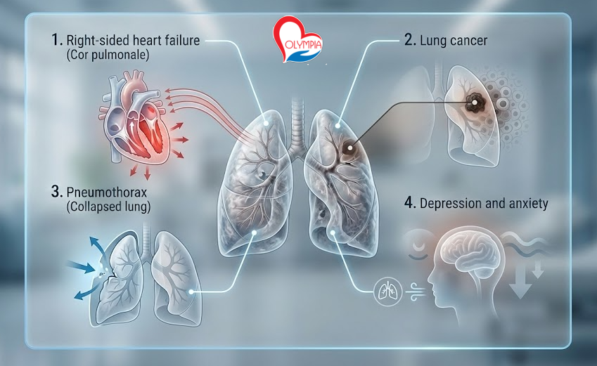 Nếu không được kiểm soát tốt, COPD có thể dẫn đến những biến chứng nghiêm trọng: