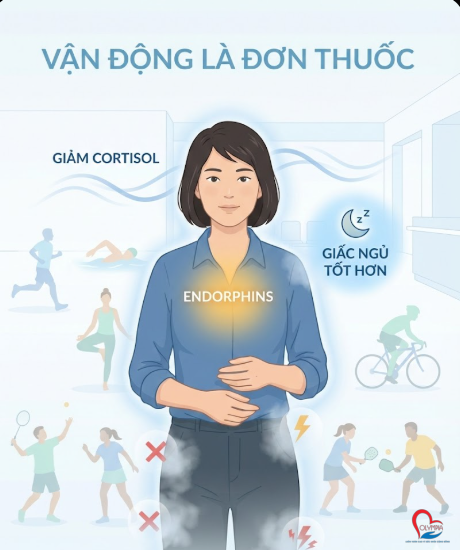 👉 Với người ít vận động, lượng hormone căng thẳng này không được tiêu hao.